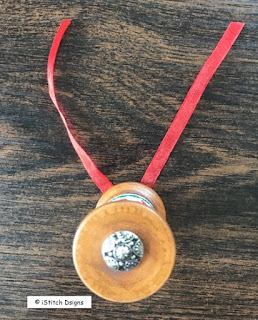 Make a hand-twisted cord or use a length of ribbon. Knot the two ends and then bring the loop end through the centre hole of the top piece.