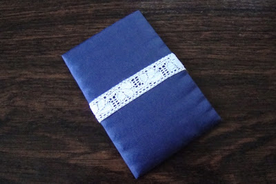 Cut your chosen lace or ribbon trim into 3 lengths of 5" (12.7 cms) each and wrap around the smaller covered pieces and tack at the back